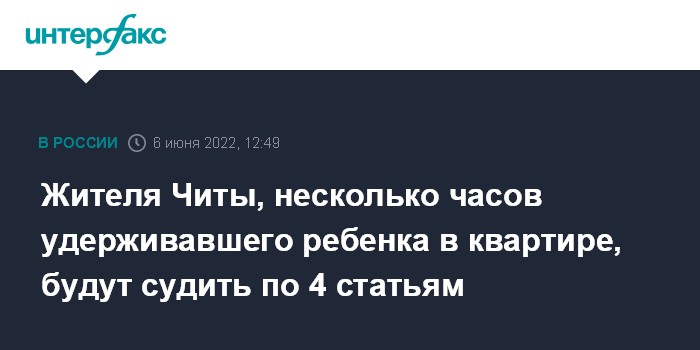 Жителя Читы, несколько часов удерживавшего ребенка в квартире, будут судить по 4 статьям