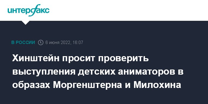 Хинштейн просит проверить выступления детских аниматоров в образах Моргенштерна и Милохина