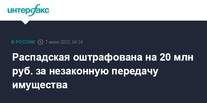 Распадская оштрафована на 20 млн руб. за незаконную передачу имущества