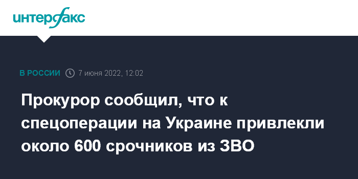 Прокурор сообщил, что к спецоперации на Украине привлекли около 600 срочников из ЗВО