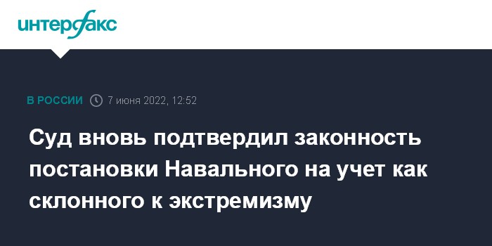 В апреле текущего года адвокат обжаловал постановку Навального на учет как склонного к экстремизму.