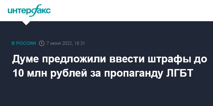 Думе предложили ввести штрафы до 10 млн рублей за пропаганду ЛГБТ