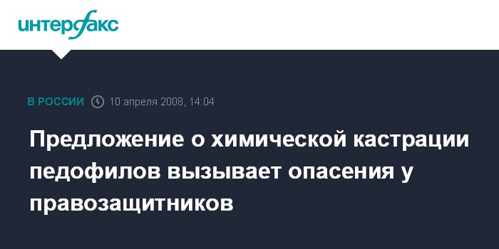 Москва. 10 апреля. INTERFAX.RU -Правозащитники не уверены, что идея химической кастрации педофилов станет эффективной мерой борьбы в России с преступлениями сексуального характера в отношении детей.
