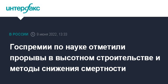 Москва. 9 июня. INTERFAX.RU - Государственные премии России в сфере науки и технологии за 2021 год присуждены авторам трех работ, в том числе о технологиях в строительстве высотных зданий и о методах снижения смертности населения. Лауреатов представил ректор МГУ Виктор Садовничий.