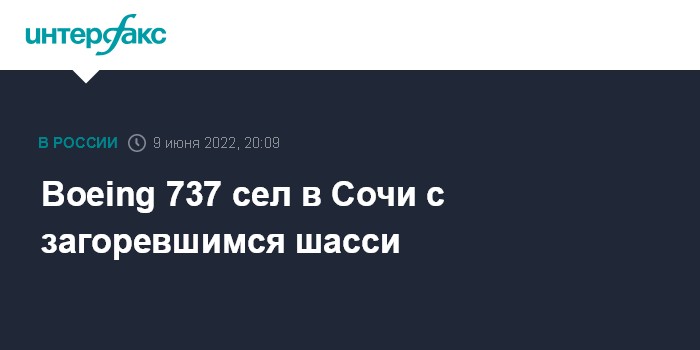 Москва. 9 июня. INTERFAX.RU - Шасси загорелось у пассажирского самолета после посадки в Сочи, сообщил "Интерфаксу" информированный источник.