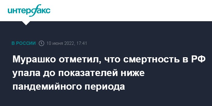 Москва. 10 июня. INTERFAX.RU - Показатели смертности населения в России достигли уровня ниже пандемийного периода, сообщил глава Минздрава РФ Михаил Мурашко.
