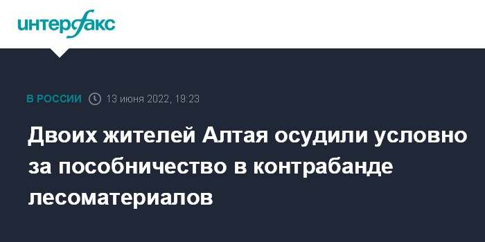 Москва. 13 июня. INTERFAX.RU - Двое предпринимателей осуждены условно в Алтайском крае за пособничество в контрабанде лесоматериалов на сумму 33 млн рублей, сообщает Западно-Сибирская транспортная прокуратура.
