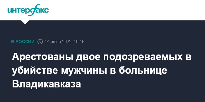 Москва. 14 июня. INTERFAX.RU - Суд избрал меру пресечения двум подозреваемым в убийстве человека в больнице Владикавказа, сообщает пресс-служба управления СКР по Северной Осетии.