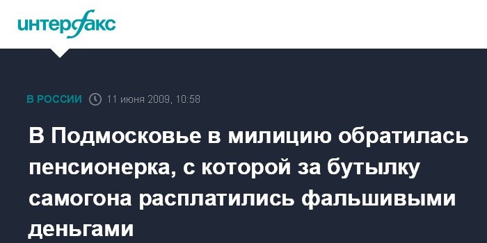 В Подмосковье в милицию обратилась пенсионерка, с которой за бутылку самогона расплатились фальшивыми деньгами