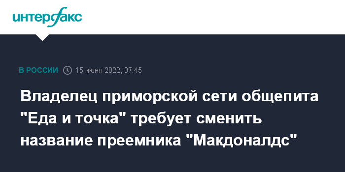 Владелец приморской сети общепита "Еда и точка" требует сменить название преемника "Макдоналдс"