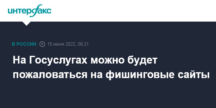 Москва. 15 июня. INTERFAX.RU - Минцифры РФ до конца лета запустит в промышленную эксплуатацию систему мониторинга фишинговых сайтов; соответствующая форма связи с гражданами станет доступна на портале Госуслуг, сообщает пресс-служба министерства в среду.