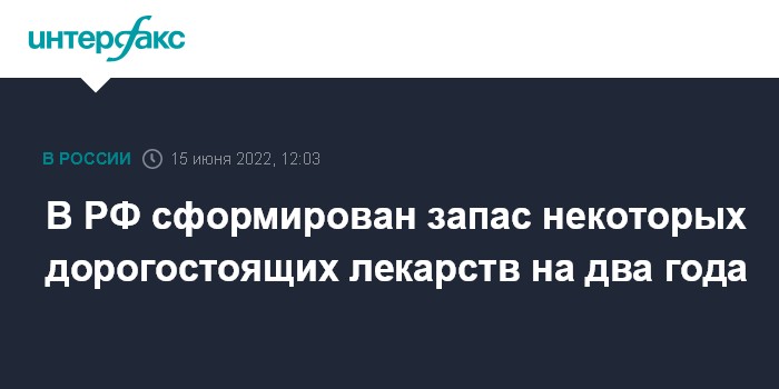 Москва. 15 июня. INTERFAX.RU - Запас и закупки по некоторым дорогостоящим редким лекарственным препаратам в России сформированы до двух лет, сообщил первый заместитель министра здравоохранения РФ Виктор Фисенко.