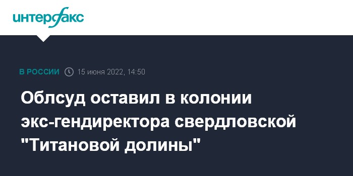 Облсуд оставил в колонии экс-гендиректора свердловской "Титановой долины"