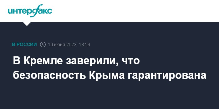 Москва. 16 июня. INTERFAX.RU - Безопасность Крыма гарантирована принимающимися мерами, заявил пресс-секретарь президента РФ Дмитрий Песков.