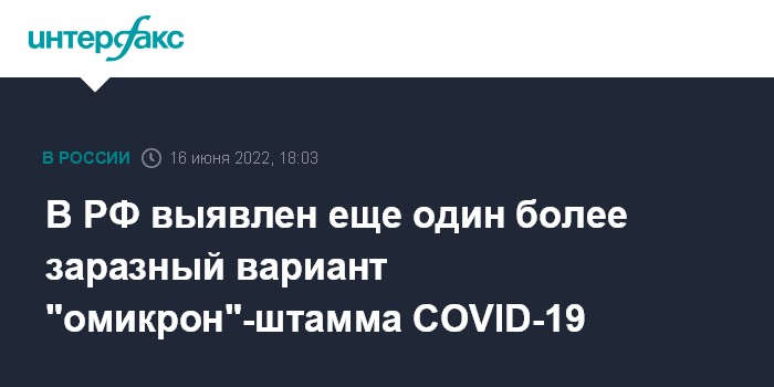 12 июня заведующий лабораторией геномных исследований ЦНИИ Эпидемиологии Роспотребнадзора Камиль Хафизов сообщил, что в России обнаружен более трансмиссивный подвариант "омикрон"-штамма коронавируса ВА.4, первые образцы с новым вариантом COVID-19 были переданы в лаборатории в конце мая.