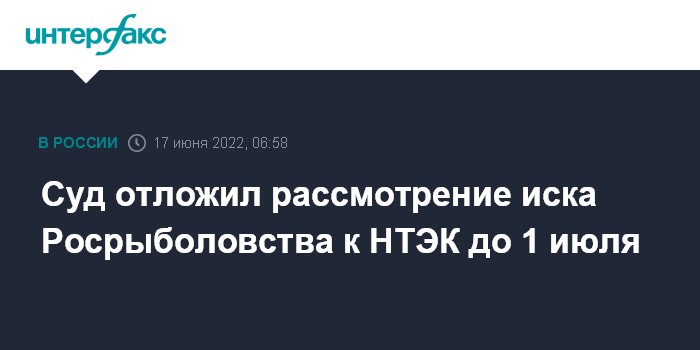 Суд отложил рассмотрение иска Росрыболовства к НТЭК до 1 июля