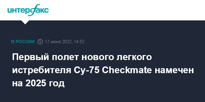 Легкий однодвигательный истребитель пятого поколения Су-75 Checkmate ("Шах и мат") разработки "Сухого" (входит в ОАК госкорпорации "Ростех") был представлен в июле 2021 года на авиасалоне МАКС. Тогда сообщалось о планах поднять его в воздух в 2023 году, а с 2026 года начать серийные поставки.