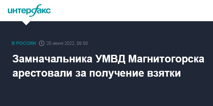 Замначальника УМВД Магнитогорска арестовали за получение взятки