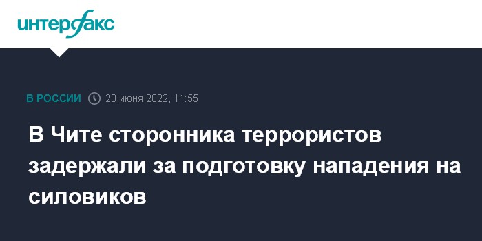 Москва. 20 июня. INTERFAX.RU - ФСБ сообщает о задержании в Чите сторонника запрещенной в РФ террористической организации "Хайат Тахрир Аш-Шам", планировавшего теракт против сотрудников правоохранительных органов.