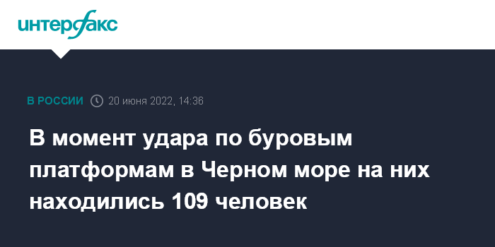 Москва. 20 июня. INTERFAX.RU - Больше ста человек находилось на трех буровых вышках в Черном море, по которым был нанесен удар, сообщил в эфире телеканала "Россия 24" глава Крыма Сергей Аксенов.