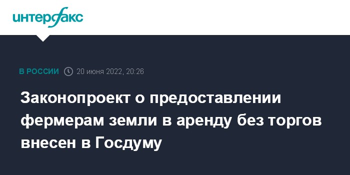 Законопроект предусматривает возможность предоставления земельных участков крестьянским (фермерским) хозяйствам в аренду без проведения торгов на срок до пяти лет. "Это позволит решить проблему, связанную с невозможностью для малых форм хозяйствования конкурировать с крупным бизнесом на земельных аукционах", - говорится в сообщении.
