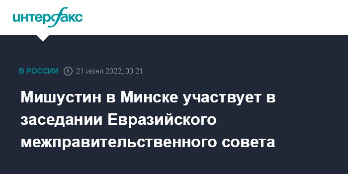 Москва. 21 июня. INTERFAX.RU - Премьер-министр РФ Михаил Мишустин 20-21 июня в Минске принимает участие в очередном заседании Евразийского межправительственного совета, сообщает пресс-служба правительства.