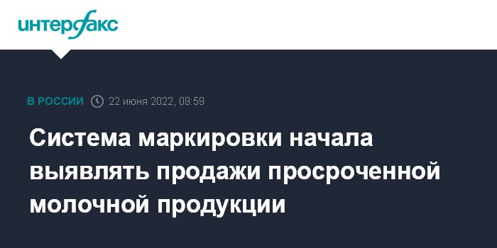 Москва. 22 июня. INTERFAX.RU - Система маркировки была дополнена функцией выявления продажи просроченной молочной продукции, сообщил оператор системы ЦРПТ.