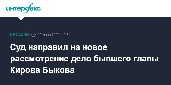 Москва. 22 июня. INTERFAX.RU - Судебная коллегия по уголовным делам Кировского областного суда в среду отменила приговор экс-главе Кирова Владимиру Быкову, осужденному за взяточничество и оправданному по другим пунктам обвинения, сообщает пресс-служба региональной прокуратуры.
