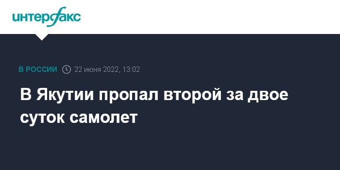 Между тем в Якутии до сих пор не найден пропавший накануне самолет Ан-2 с двумя членами экипажа и одним пассажиром, который утром 21 июня вылетел по маршруту Ус-Хатынг (Якутск) - Вертикальный (Кобяйский район) - Ус Хатынг, но так и не прибыл к месту назначения.