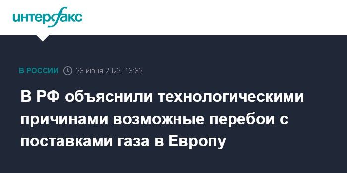В РФ объяснили технологическими причинами возможные перебои с поставками газа в Европу