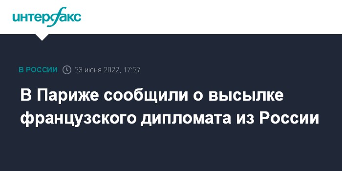 Москва. 23 июня. INTERFAX.RU - Официальный представитель МИД Франции сообщил в четверг о требовании российских властей, чтобы один из дипломатов французского посольства в Москве покинул Россию.