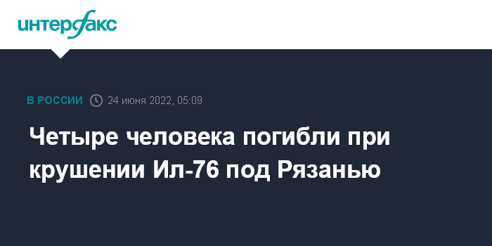 Москва. 24 июня. INTERFAX.RU - Военно-транспортный самолет Ил-76 совершил жесткую посадку под Рязанью из-за неисправности двигателя, частично разрушился на земле, пострадавшие доставлены в медучреждения, сообщили в Минобороны РФ в пятницу; по данным регионального правительства, в результате инцидента погибли четверо человек.