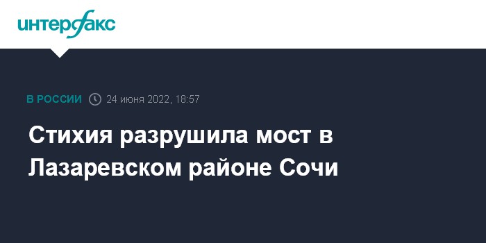 Москва. 24 июня. INTERFAX.RU - В поселке Зубова Щель Лазаревского района Сочи в результате непогоды разрушен мост, сообщает пресс-служба горадминистрации в пятницу.