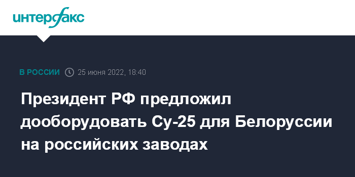 Москва. 25 июня. INTERFAX.RU - Президент РФ Владимир Путин предложил дооборудовать в России находящиеся на вооружении белорусской армии самолеты Су-25.
