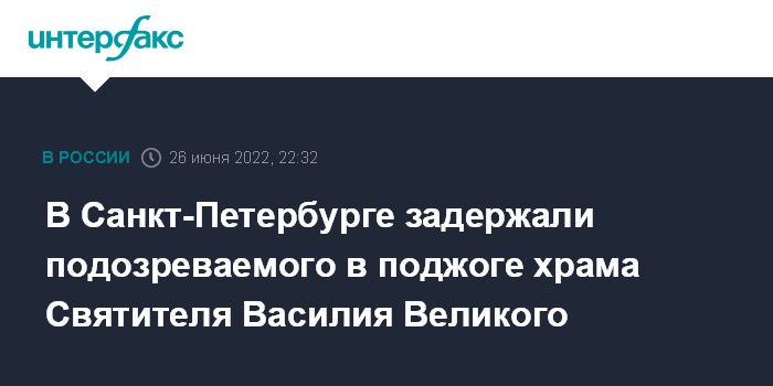 "В Санкт-Петербурге полицейскими задержан подозреваемый в поджоге Храма Святителя Василия Великого", - сказала Волк журналистам.