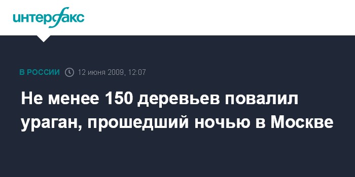 Москва. 12 июня. INTERFAX.RU - В российской столице около 150 деревьев были повалены ураганным ветром вечером в четверг и в ночь на пятницу, сообщил "Интерфаксу" источник в городских структурах.