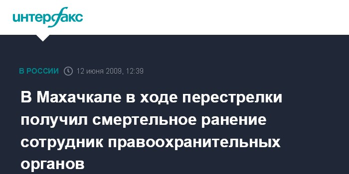 Москва. 12 июня. INTERFAX.RU - Сотрудник правоохранительного органа убит в пятницу в Махачкале, сообщил "Интерфаксу" источник в МВД Дагестана.