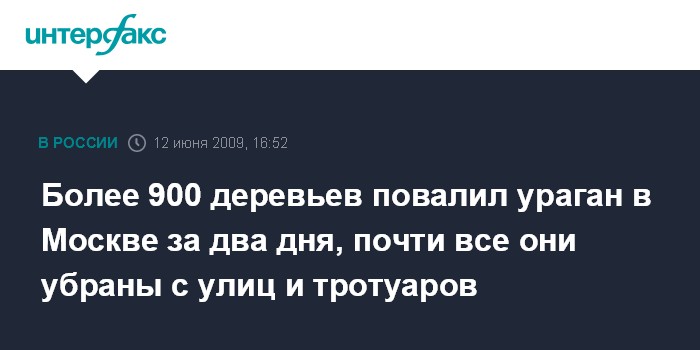 Москва. 12 июня. INTERFAX.RU - По последним уточненным данным, в российской столице за двое суток ураганным ветром были повалены 944 дерева, сообщил "Интерфаксу" в пятницу источник в городских структурах.