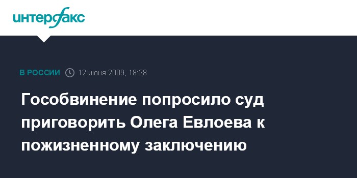 Москва. 12 июня. INTERFAX.RU - Гособвинение на заседании в пятницу попросило суд Астаны признать Олега Евлоева виновным в убийстве семьи столичного предпринимателя и назначить ему наказание в виде пожизненного лишения свободы.