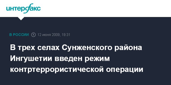 Назрань. 12 июня. ИНТЕРФАКС-ЮГ - Три села Сунженского района Ингушетии объявлены в пятницу зоной проведения контртеррористической операции.