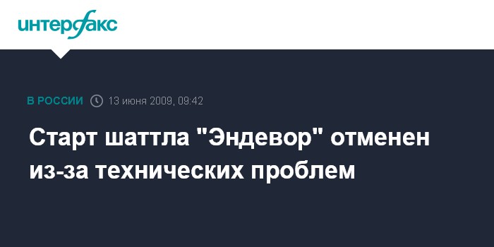 Москва. 13 июня. INTERFAX.RU - Запуск космического челнока "Эндевор" к Международной космической станции (МКС) откладывается из-за технических проблем в системе заправки внешних топливных баков.