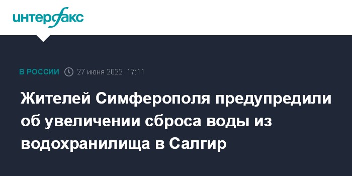 Москва. 27 июня. INTERFAX.RU - В Крыму из-за обильных дождей увеличат сброс воды из крупнейшего в регионе Симферопольского водохранилища, вода поступит в реку Салгир, которая проходит через уже подтопленный Симферополь, сообщила администрация города.