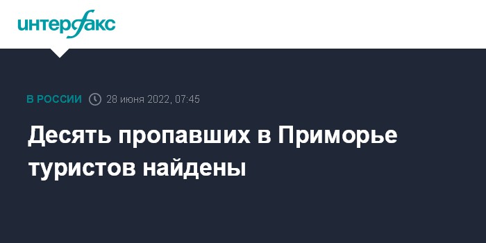 Москва. 28 июня. INTERFAX.RU - Туристическая группа, накануне потерявшаяся в Приморье во время похода на гору Ливадийская (Пидан), обнаружена, сообщила пресс-служба краевого главка МЧС РФ.