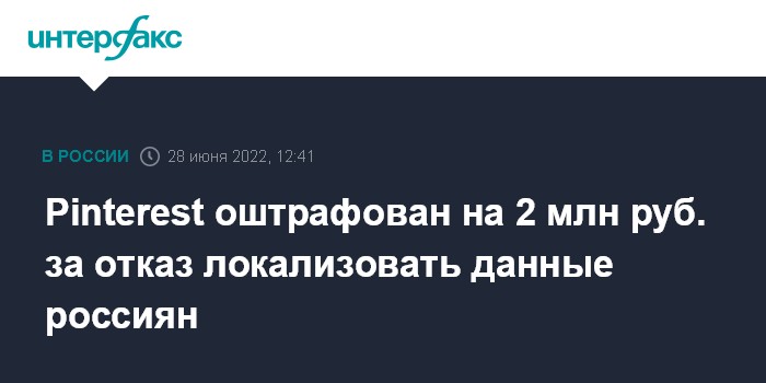 Pinterest оштрафован на 2 млн руб. за отказ локализовать данные россиян