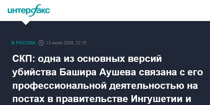 Назрань. 13 июня. ИНТЕРФАКС-ЮГ - По факту убийства бывшего вице- премьера правительства Ингушетии Башира Аушева возбуждено уголовное дело.