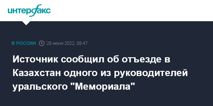 Источник сообщил об отъезде в Казахстан одного из руководителей уральского "Мемориала"