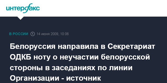 Белоруссия направила в Секретариат ОДКБ ноту о неучастии белорусской стороны в заседаниях по линии Организации - источник