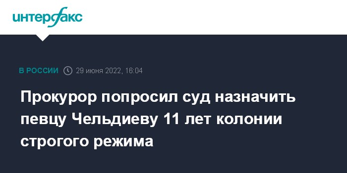 Прокурор попросил суд назначить певцу Чельдиеву 11 лет колонии строгого режима