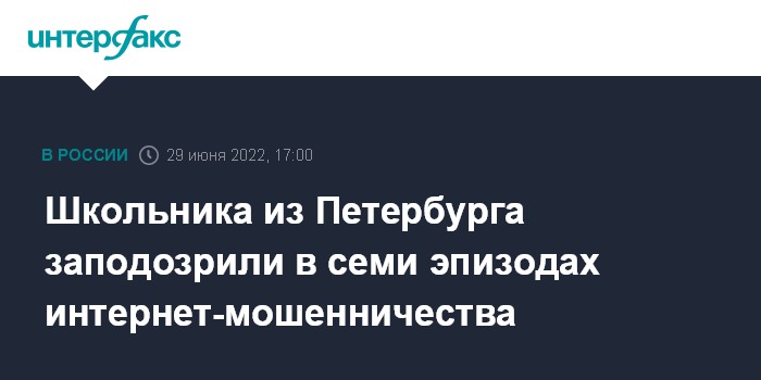 Школьника из Петербурга заподозрили в семи эпизодах интернет-мошенничества