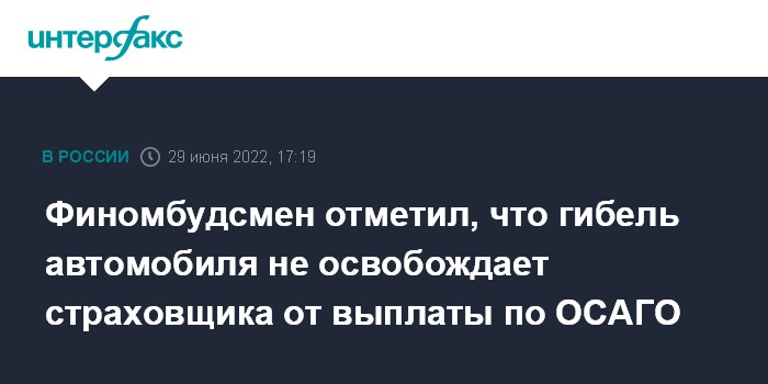 Финомбудсмен отметил, что гибель автомобиля не освобождает страховщика от выплаты по ОСАГО